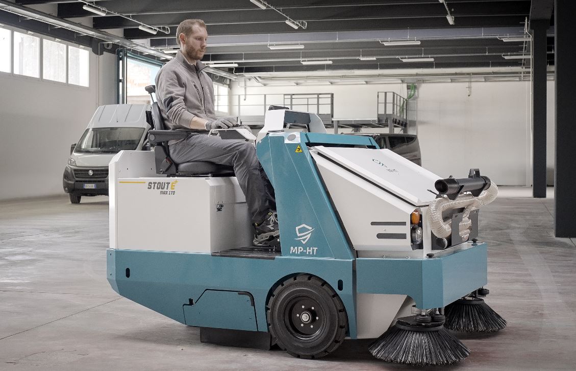 The two new ride-on sweepers, WIND ANT E4H and STOUT E+, have been completely redesigned for greater ease of use, increased productivity, simplified management, and lower maintenance costs.